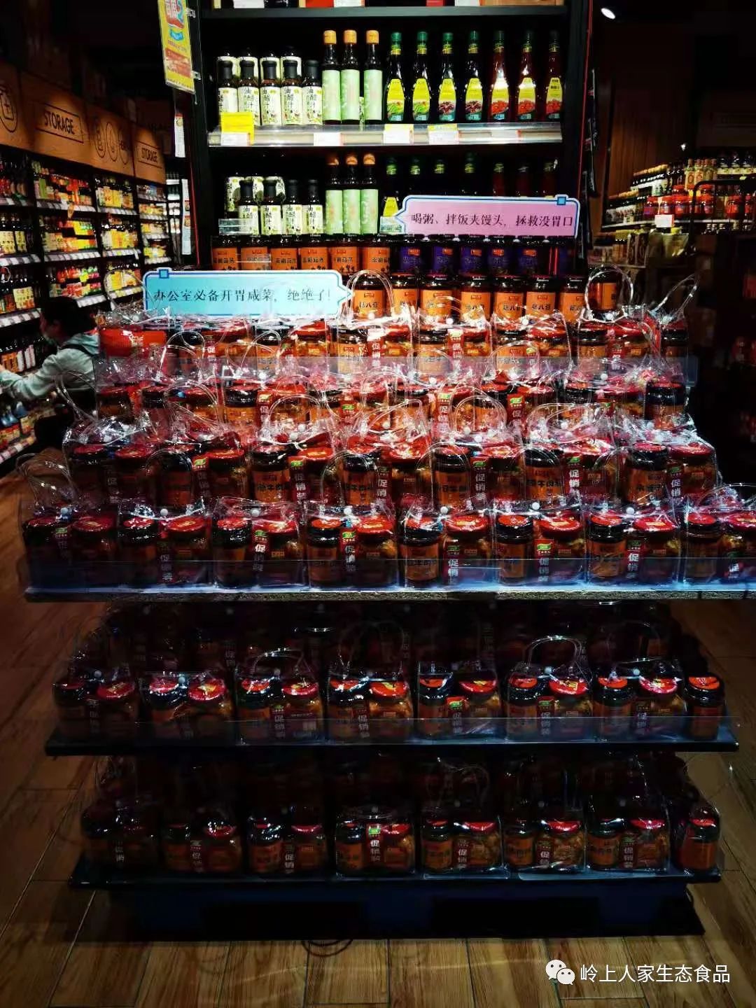 嶺上人家攜手專業(yè)調(diào)味品供應(yīng)商江豐食品公司將產(chǎn)品送入北山、國貿(mào)、雅斯等各大商超,為迎接“五一”促銷活動做準(zhǔn)備。